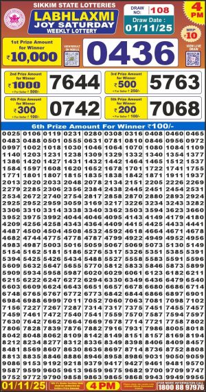 Sikkim State Lottery Sambad Dear Evening 6 PM Result Today 01-11-2025