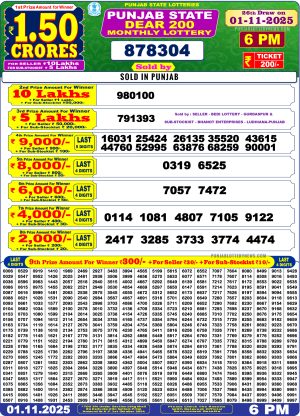 Punjab State Dear 200 Monthly Lottery Result 01-11-2025 Winners List