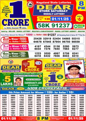 Nagaland State Lottery Sambad Dear Night 8 PM Result Today 01-11-2025 Winners List