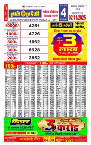 Labh Laxmi Lottery 4 PM Result Today 02-11-2025 LIVE