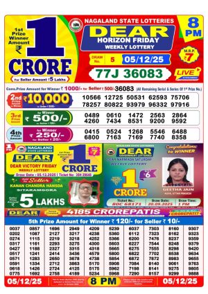 Nagaland State Lottery Sambad Dear Morning 1 PM Result Today 05-12-2025 LIVE