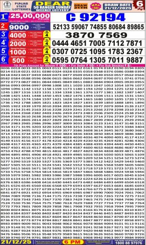 Punjab State Dear 50 Lottery 6 PM Result 21-12-2025