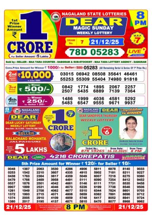 Nagaland State Lottery Sambad Dear Night 8 PM Result Today 21-12-2025 Winners List