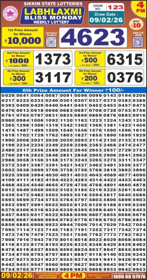 Sikkim State Lottery Sambad Dear Evening 6 PM Result Today 09-02-2026