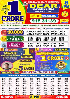 Nagaland State Lottery Sambad Dear Night 8 PM Result Today 09-02-2026 Winners List