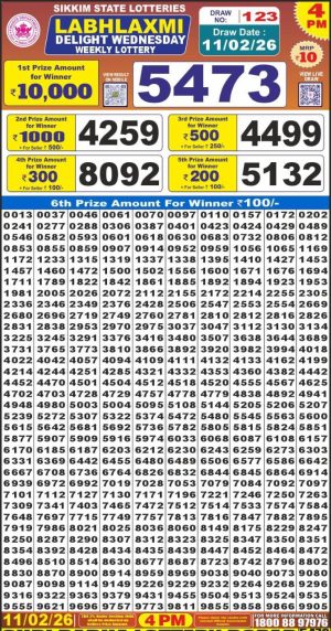 Sikkim State Lottery Sambad Dear Evening 6 PM Result Today 10-02-2026