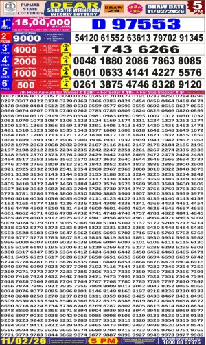 Punjab State Dear 50 Lottery 5 PM Result 09-02-2026
