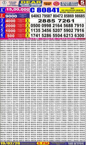 Punjab State Dear 50 Lottery 5 PM Result 19-02-2026