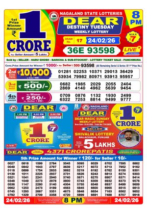 Nagaland State Lottery Sambad Dear Night 8 PM Result Today 24-02-2026 Winners List