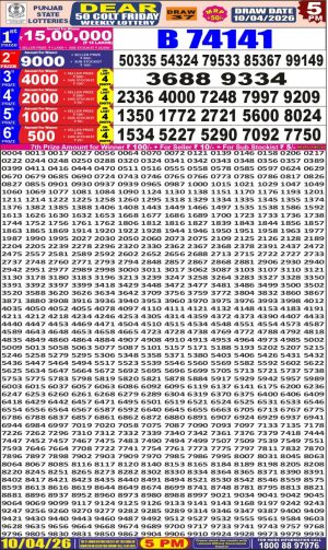 Punjab State Dear 50 Lottery 5 PM Result 10-04-2026