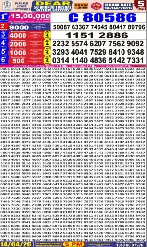 Punjab State Dear 50 Lottery 5 PM Result 14-04-2026