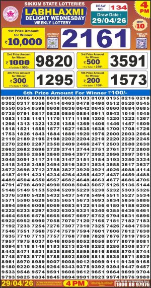 Sikkim State Lottery Sambad Dear Evening 6 PM Result Today 26-04-2026