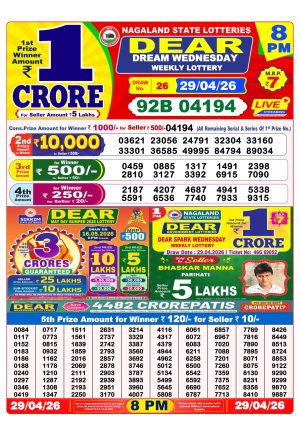 Nagaland State Lottery Sambad Dear Night 8 PM Result Today 29-04-2026 Winners List