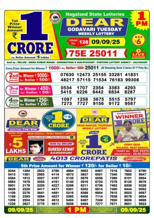 Nagaland State Lottery Sambad Dear Morning 1 PM Result Today 09-09-2025 LIVE