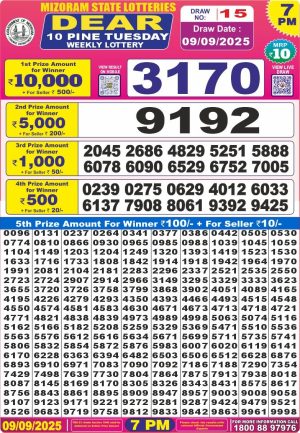 Dear 10 7PM Weekly Lottery Result Today 09-09-2025