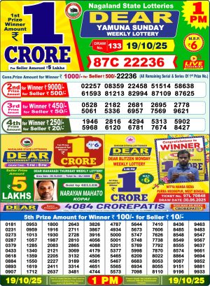 Nagaland State Lottery Sambad Dear Morning 1 PM Result Today 19-10-2025 LIVE