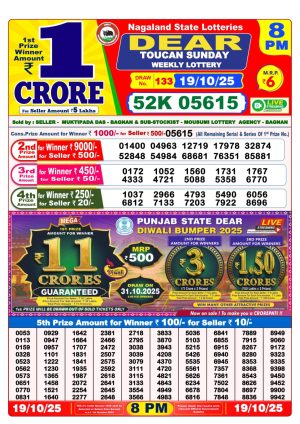 Nagaland State Lottery Sambad Dear Night 8 PM Result Today 19-10-2025 Winners List