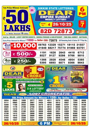 Sikkim State Lottery Sambad Dear Evening 6 PM Result Today 26-10-2025