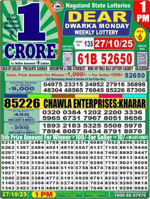 Nagaland State Lottery Sambad Dear Morning 1 PM Result Today 27-10-2025 LIVE