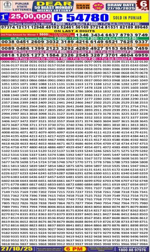 Punjab State Dear 50 Lottery 6 PM Result 27-10-2025