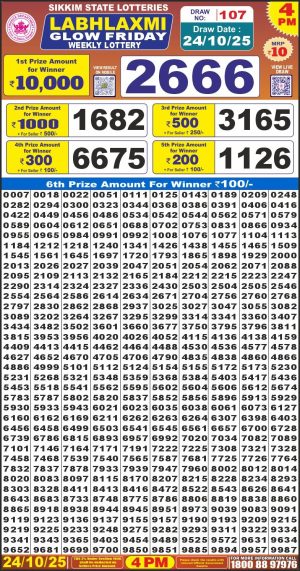 Sikkim State Lottery Sambad Dear Evening 6 PM Result Today 24-10-2025