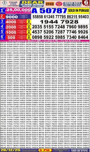 Punjab State Dear 50 Lottery 6 PM Result 20-12-2025
