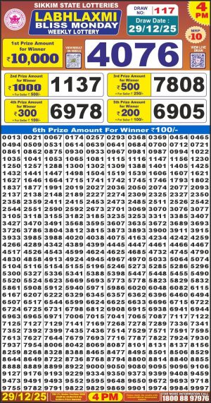 Sikkim State Lottery Sambad Dear Evening 6 PM Result Today 29-12-2025