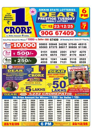 Sikkim State Lottery Sambad Dear Evening 6 PM Result Today 23-12-2025