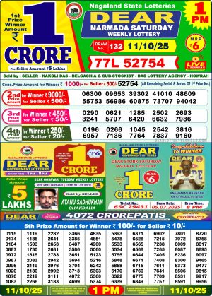 Nagaland State Lottery Sambad Dear Morning 1 PM Result Today 11-10-2025 LIVE