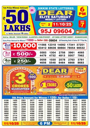 Sikkim State Lottery Sambad Dear Evening 6 PM Result Today 11-10-2025