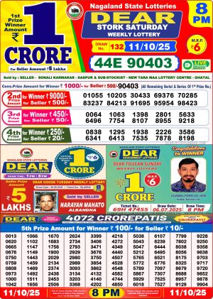 Nagaland State Lottery Sambad Dear Night 8 PM Result Today 11-10-2025 Winners List