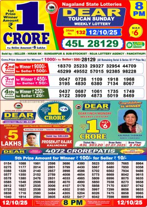 Nagaland State Lottery Sambad Dear Night 8 PM Result Today 12-10-2025 Winners List