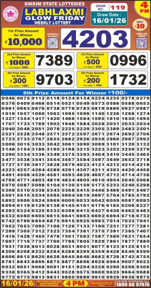 Sikkim State Lottery Sambad Dear Evening 6 PM Result Today 16-01-2026