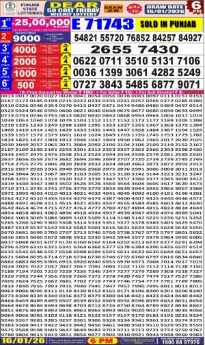Punjab State Dear 50 Lottery 6 PM Result 16-01-2026