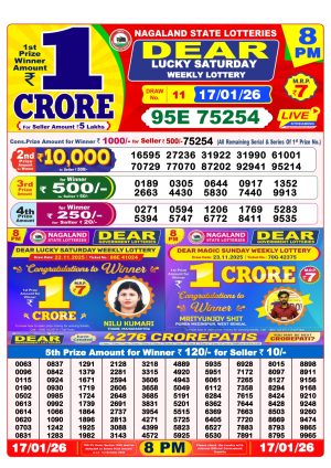 Nagaland State Lottery Sambad Dear Night 8 PM Result Today 17-01-2026 Winners List