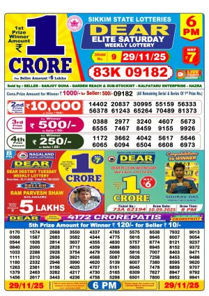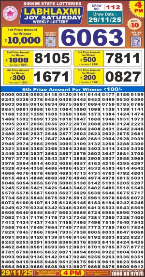 • Sikkim State Lottery Sambad Dear Evening 6 PM Result Today 30-11-2025