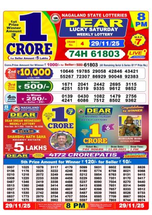 Nagaland State Lottery Sambad Dear Night 8 PM Result Today 29-11-2025 Winners List