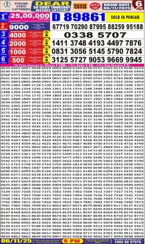 Punjab State Dear 50 Lottery 6 PM Result 06-11-2025