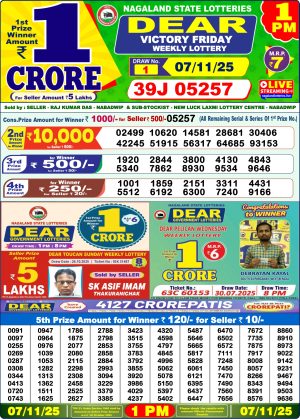 Nagaland State Lottery Sambad Dear Morning 1 PM Result Today 07-11-2025 LIVE