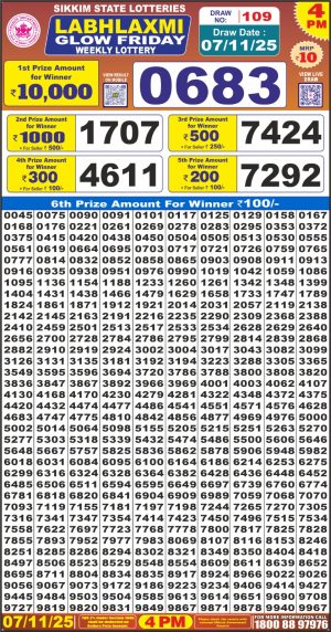 Sikkim State Lottery Sambad Dear Evening 6 PM Result Today 07-11-2025