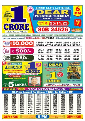 Sikkim State Lottery Sambad Dear Evening 6 PM Result Today 25-11-2025
