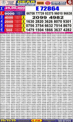 Punjab State Dear 50 Lottery 6 PM Result 25-11-2025