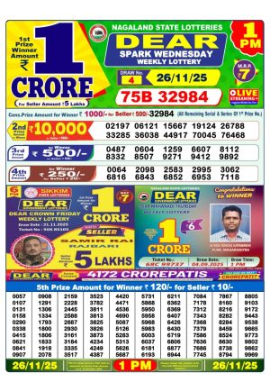 Nagaland State Lottery Sambad Dear Morning 1 PM Result Today 26-11-2025 LIVE
