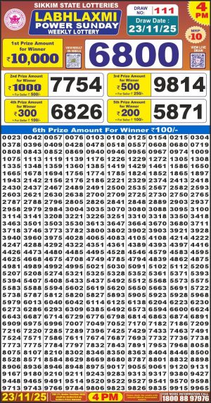 • Sikkim State Lottery Sambad Dear Evening 6 PM Result Today 30-11-2025