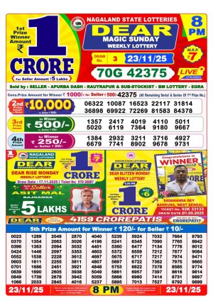 Nagaland State Lottery Sambad Dear Night 8 PM Result Today 23-11-2025 Winners List