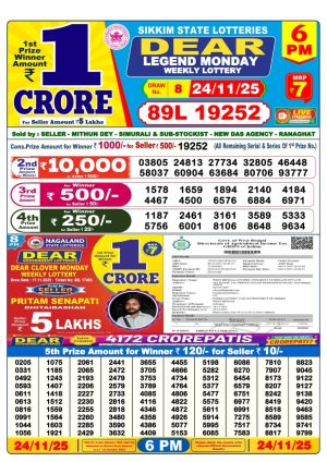 Sikkim State Lottery Sambad Dear Evening 6 PM Result Today 24-11-2025