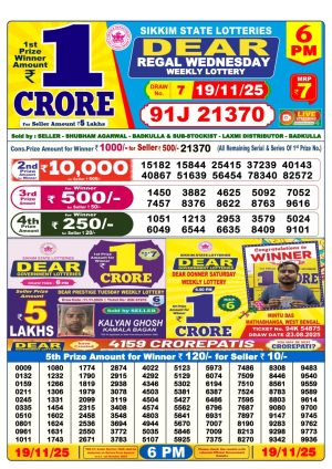 Sikkim State Lottery Sambad Dear Evening 6 PM Result Today 19-11-2025