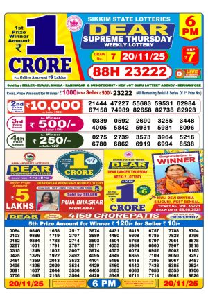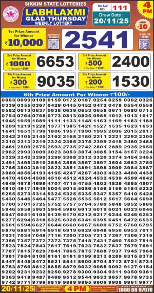 Sikkim State Lottery Sambad Dear Evening 6 PM Result Today 20-11-2025