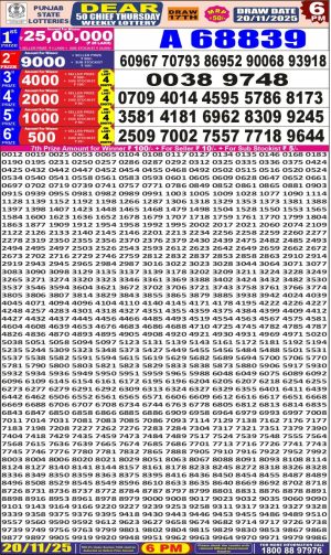 Punjab State Dear 50 Lottery 6 PM Result 20-11-2025