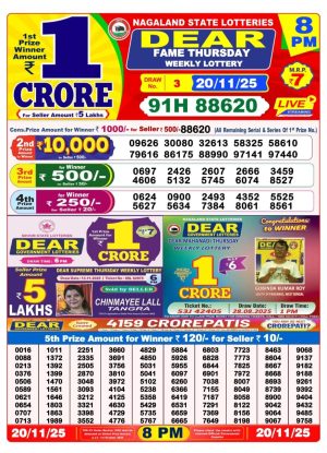 Nagaland State Lottery Sambad Dear Night 8 PM Result Today 20-11-2025 Winners List